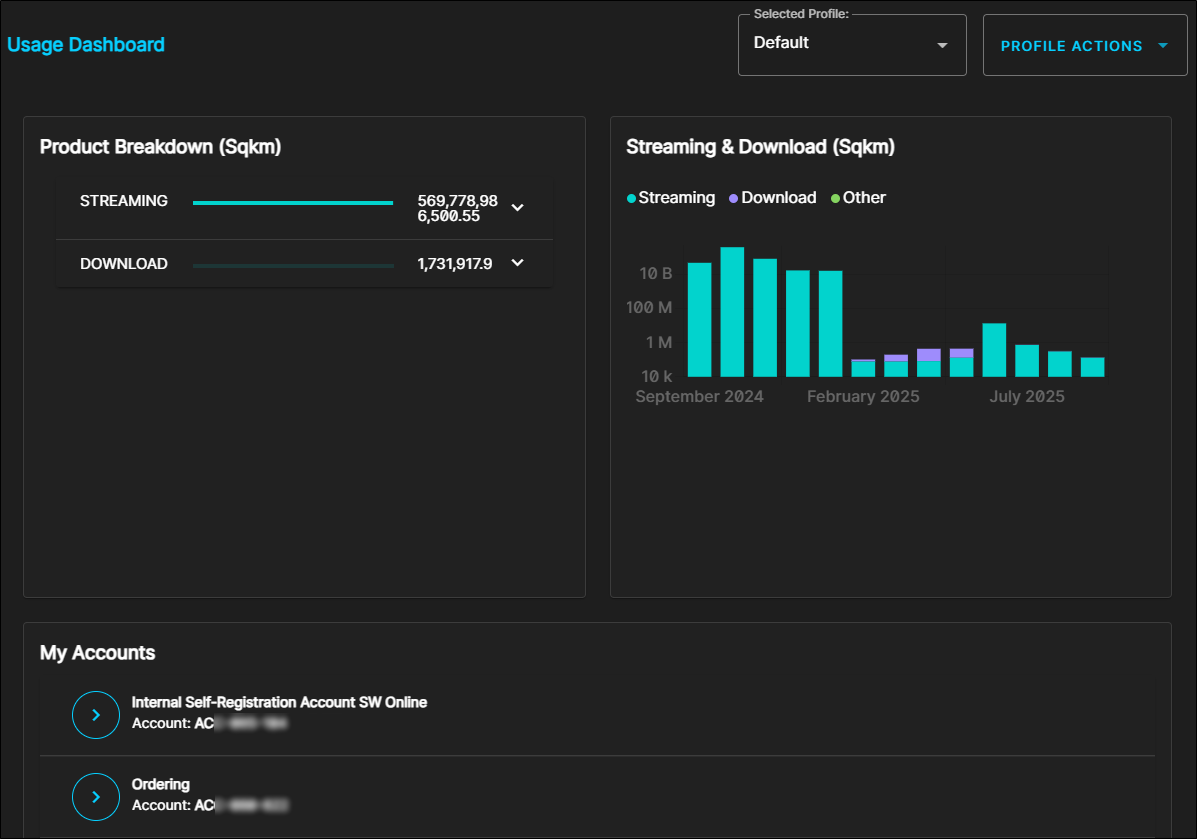 The Usage tab gives you a simplified breakdown of product usage across your account. You can also create a profile with a specific usage parameters.